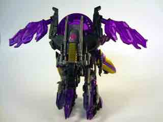 When Kickback was announced for this line, I probably couldn't have been less excited. This isn't because the toy itself is bad - it's actually pretty good, it's just that I have no real nostalgic connection to the Insecticons. In the era of increasingly expensive deluxe toys I grumble more, but so far Generations has been largely good particularly because some of the toys are feeling a little meatier. Kickback feels like a refugee from Transformers Prime with his head resembling a Vehicon, but his accessories feel like they came from a different line entirely. Two small purple "wing" weapons look like leftovers from Transformers Energon, and a disc launcher is a real surprise in a line targeted at least a little bit at older customers. The important thing here is that it looks good and is fun.