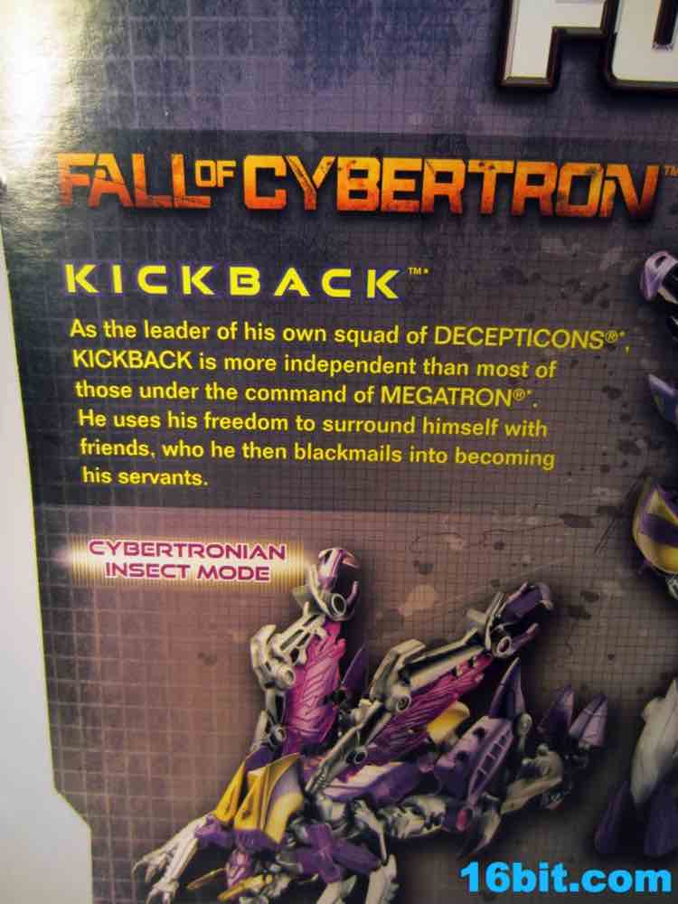 The toy itself fits together nicely and feels fairly solid, with a nice, thick, glossy plastic rather than the slightly more airy (and in spots, hollow) material used on larger toys. It's a strange evolution, as the Deluxe price point seems to be getting more and more solid, while the higher Voyager-class price points are getting to feel more and more, well, like cheaper toys. Neither is really superior right now, but Kickback does make for a great toy for the older collectors. Unfortunately, it also comes one per case to stores, and to date only appears in one assortment. As such, buy it if you see it and think you want one. Were it $10, this would be an amazing item. At $16, it still feels pretty good, although a little something extra on bug mode would have made a world of difference. I'd still say get it at retail price if you have the means.