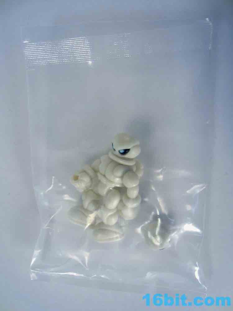 I find it odd that Onell Design wouldn't exploit a new figure like this one by, you know, selling it at full price. I suspect that this is the best freebie figure you'll get from any company all year long. I'm eager to see what color configurations happen - maybe a yellow and green would be nice - and the figure looks like the basis for something truly wonderful later. Noboto currently exists in clear colorless plastic or this metallic white "Ivorinium" flavor, either of which is going to look great. His black eyes have a little blue and a dot of white, and Onell Design promises another run of Noboto in these colors in the future. I really like this guy, and at 2 1/3-inches high he's a full head shorter than Pheyden. I'll definitely buy one or two more in other colors in the future. Get one, you'll like it.