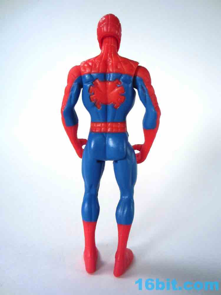 While the blue Night Mission figure is a wonderful example of what I assume to be a toy designer bashing their head against the desk to come up with something new, weird, and different, ol' red-and-blue is pretty paint by numbers. The design is delightfully cartoony with sculpted webbing over his red outfit segments, the panel lines going unpainted. A black spider appears on his chest, and he has big, friendly eyes with a black outline on his head. For the toy dorks out there, it's very much like getting an Alpha Phase Outer Space Men figure, and then the regular one. Except in this case, you've seen thousands of regular ones by now.