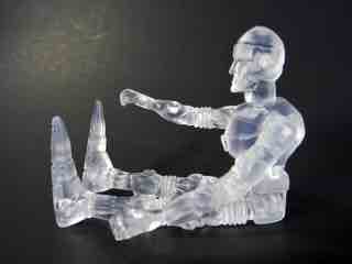As always, the figure is made with Glyos-based limbs and is made from a total of 13 clear colorless parts. He has four clear blue accessory pieces, and may be better without the armor. The subtle details in the face, plus his painted silver eyes, give off a vibe that seems to be lost in time between the 1930s and 1960s. Unfortunately, the torso seems a little on the small side and the shoulder joints almost feel too large for the body - the accordion joints hang over the top just a smidgen. When he's all put together you might notice this, but up close it's hard to miss.