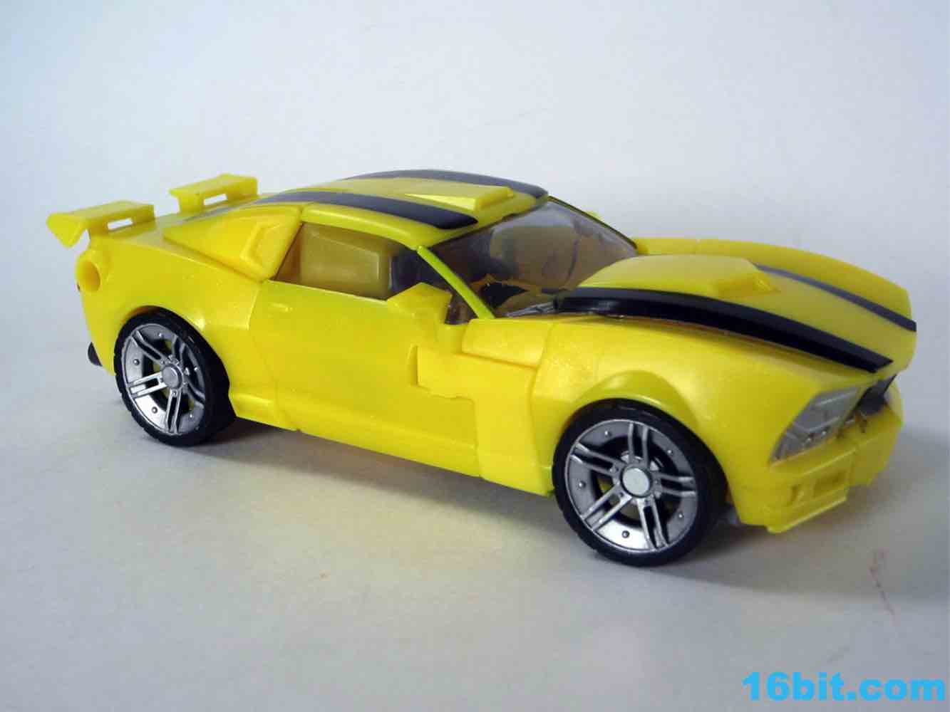 The vehicle mode is acceptable - it looks nice, and you can plug the stingers into it. The car mode seems a little tricky on my sample, because sometimes the robot chest plate drags on the ground in car mode. The wheels roll, but not terribly well - there's a higher amount of friction on the rear wheels. The front wheels spin quite nicely and are mounted on a metal axel, while the back wheels are just plugged into place and are functionally slightly better than being ornamental. (This has been happening a lot lately.) Still, for most adult buyers the car's ability to roll around on a table isn't the selling point.