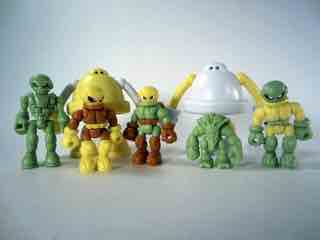 This figure includes 19 parts, and due to its unique design has a little more mobility than his Glyos ancestors. A clever swivel joint in the shoulder allows the arms to rotate in and out, adding to the amount of personality you can squeeze out of this mold. The figure's construction is similar to a shorter, tricked-out Pheyden with more options. For example, the ring at the base of Noboto's head is a removable part. The brown belt is also completely removable, and can be swiveled around. On the figure's back is a brown backpack that, while certainly a nice bonus, doesn't do much to add to the figure. It's there, and it probably added to the development a bit. I don't think I'd miss it if the part was dropped, as it's not quite as integral or versatile as the Armorvor backpack which doubles as a blaster. It doesn't hurt anything, though.