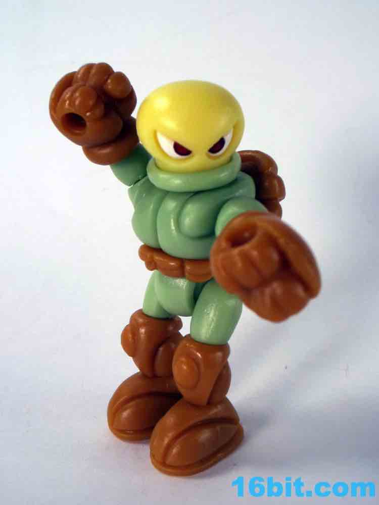 Behold, the MVR Standard Noboto! Like his series mate Gobon, it's the first "standard" Noboto and due to the three colors of plastic used, he was joined by two brothers made from the leftover pieces. The standard Noboto has a yellow head with white eyes (the only Noboto with more or less normal whites of his eyes), brown hands and feet, and a brown belt over a green body. It's certainly an unexpected color combination, but it works.