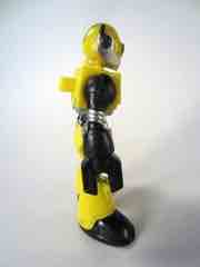 The 3-inch yellow figure looks like a safety test dummy, a piece of factory equipment, and a dangerous being all in one. A "tool" plugs into his back with hammers, screwdrivers, and other tools but has little actual use. It can't be plugged into his hand, unfortunately, so it's mostly just ornamental. It's quite nice, but it would be nicer if they thought out what kids will do with it. He also includes a heck of a big gun, which is heavy enough that the figure may topple over if not balanced correctly. Thanks to the swell design, the figure's giant feet keep him from falling over most of the time - but like I said, big big gun.