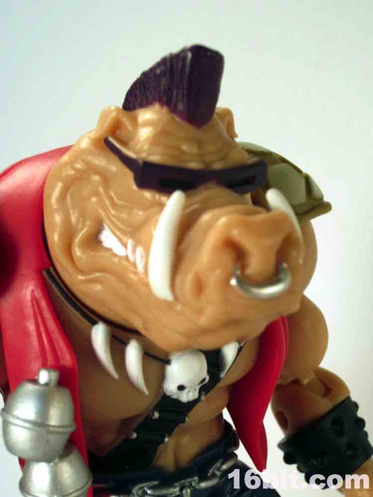 If you're familiar with many of the twisted and grotesque animal-based toys from Playmates, this figure seems to recall that more than anything I've seen of the character. I've read the Archie TMNT comics, and this doesn't look a thing like any of those... or of the video games... or of the toys. It's a really bizarre figure and I would daresay the sculpt is wildly inappropriate for a collector-driven figure line. Were this the look of a new Bebop for the kiddie line, I'd actually be quite keen on it. I want something that looks like the cartoon - and while this comes close, its authenticity is inversely proportional to your ability to see it. Got smudged-up glasses? You'll love it. Collect animation cels? This figure will drive you crazy.
