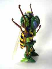 New sizable toys of Beast Wars characters are, to say the least, uncommon in North America. Hasbro hasn't put out new transforming versions of the characters in a while - we got Cheetor and Dinobot around 2009, Cybertron-era resculpts of Optimus Primal and Megatron around 2006, and a few repaints here and there. Waspinator is the first of two new releases in the "Thrilling 30" deluxe line from the series, along with a Voyager-class Rhinox released at about the same time. Much like the show from which he hails, the Predacon has a feverishly loyal following which is quite well-deserved. The writers had a lot of fun with a character that is little more than a dumb thug with a curious speech pattern. His personality is one of the most memorable in the entire Transformers mythos, so it makes sense he got two transforming toys in 2013.
