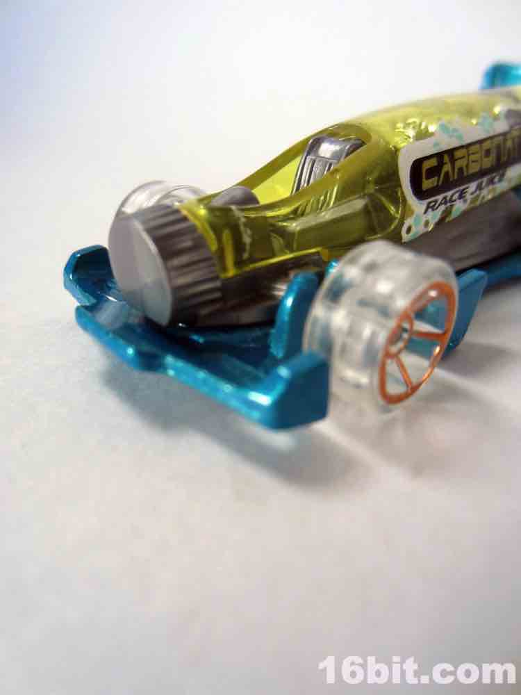 Mattel Hot Wheels X-Raycers Carbonator Die-Cast Metal VehicleLike many cars in this line, it's obvious the designers had a much older customer in mind. The notion of a metal bottle cap is something removed from modern life, so having a car that can remove one is more than a bit of a novelty. As the car has another cap as a sort of hood ornament, it's certainly not the kind of thing that feels like it belongs in the 21st century.