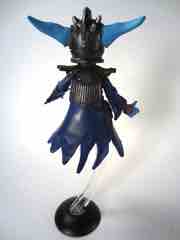 It would be easy to complain about this figure for what it isn't, but I was more impressed by what it is. The default head has massive, pierced ears and a ragged mask over his eyes, with creepy slits for eyes rather than Orko's big friendly yellow peepers. Other than a tiny bit of blue skin and that mask, the similarities to Orko are pretty limited. The armor and its vertical ribbing feels more like Darth Vader's body suit, and his tattered robes and armored shoulders have a look both fantastical and alien. The hat head feels like a better fit for a distant relative of Orko's, but the alternate armor head plays up the Darth Vader similarity with the whole man in the iron mask vibe. His mouth is covered in a toothy plate of armor, with a metal mohawk and painted spikes. The individually-decorated rivets, glossy buttons on his belt, and red skull show that while there's not a lot of plastic, there's a heck of a lot of paint here.