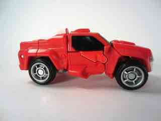 Transformation is a bit like Cybertron Swindle and Hardtop. The legs fold back and become the back of the vehicle, the arms slide in toward the body, and the front wheels fold under the hood - once you extend that up. A tricky bit in the torso allows you to swing the white body forward a bit. He's solid in both modes, and unlike many other toys it's a fun process I think I'll never get sick of. I'm not seeing any obvious stress or hangups, so this is one of the better new toys.