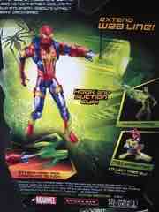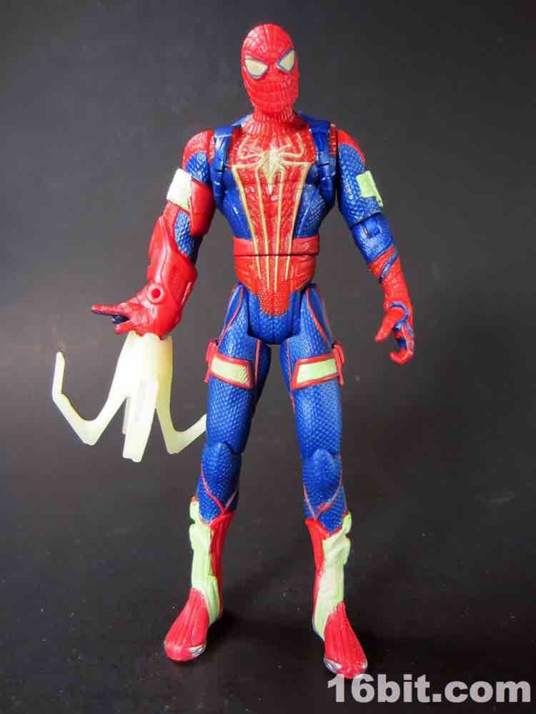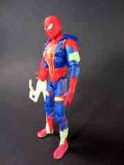 While not as authentic as the super-poseable figures or as whimsical as the Ninja or Razor Scooter ones, this is a bizarre and fun release. The blue and red costume is augmented with glowing eyes, a spider symbol, and other elements painted in a way that actually glows fairly well. I just recently got another figure with painted glowing bits and I can tell you it was terrible, so this was a refreshing change of pace. The suction cup and hook also glow quite nicely, and plug in to a little knob in the figure's right hand. That knob is affixed to a rope which recoils back in the figure's body when extended - it's a neat feature but the fact that it's barely 6-inches long makes it pretty worthless. You can't make Spidey really climb anything, it's less functional and more of a "let's pretend!" kind of feature.