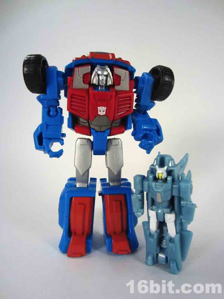 Transformation is a snap, just like with Swerve. Legs fold up, arms tuck in, and with a clever couple of moving bits in the chest you've got yourself a great blue truck. The wheels roll quite freely and nicely, but the windows have an odd red panel just underneath. It's distracting, and not how it looked on the packaging shots.