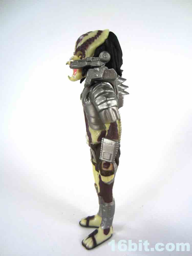 As always, the figure is based on one pose that seems to be the basis for all ReAction figures, which makes sense given what seemed like a rapid development cycle. The good news is that the figure basically looks kind of skinny, and like a guy in a suit. That's also the bad news - the figures tend to have similar poses, with feet out at an angle, similar elbow bends, and so on. I guess this is consistent with the likes of the old Kenner Chewbacca, who was designed without a neck joint. The Predator has a neck joint, but the hair prevents it from actually moving.