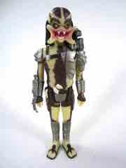 As many have mentioned, a 1987 movie done as a retro toy line would be more at home as a G.I. Joe-styled figure - plus it would give us an in for Billy, Dutch, Blaine, and the rest of the crew. Instead, you get a 1987 movie in a 1977 style - more or less - with a paint job that's a little more modern. The figure is molded in a yellow plastic with brown highlights, silver armor, and some pink, white, and yellow for the face. At a hair over 4-inches tall, he does tower over other figures slightly - which is exactly what you want here. I kind of wish he was more beefed up like Bigfoot, but hey, it's still pretty good. The detail is pretty light, with small skulls and the open fanged mandibles you know and love. The armor feels very lively thanks to the silver paint, and I would argue this makes it look better than a true retro figure. One of the tricky things to remember - and execute - is that those things kind of suck in spots. This one is largely pretty good. The head is big and expressive, but there's always the issue of "prior art." In the Predator's case, that prior art is the Alien which largely departed from many of the Kenner design cues of its day. The Alien is much larger, wider, and generally more fearsome - while the Predator is, proportionally, a tall guy in a mask, really. Beefing up his limbs, spreading his legs a bit, and giving him a weapon would have done him a lot of good - but let's take it for what it is, and what it is, is a fun little figure that is worth ten bucks.