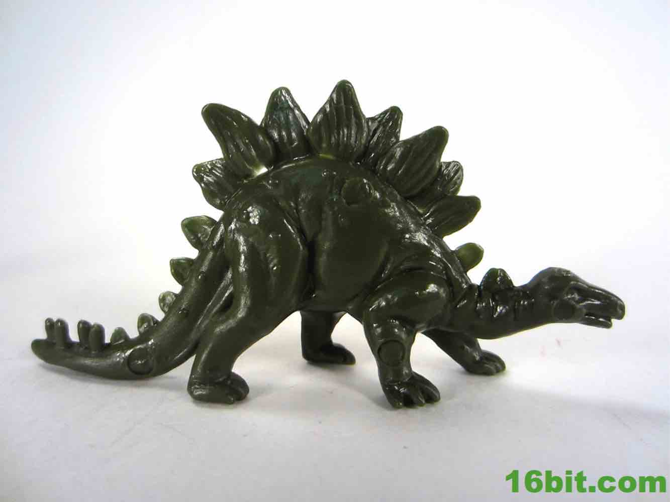 The stegosaurus looks both better and worse than I seem to remember it. The detail is a lot sharper, each plate has a few grooves and the head and neck are nicely sculpted. The expression is a little more optimistic, and the longer neck radically alters his personality. It looks more doddering, older, and a little more wobbly than the tanklike ankylosaurus in this set. The less-sturdy look and feel is carried into its thin build, with a small hole appearing under the plates on his back in two spots. The traditional spiked tail is here, as are the four legs. There's not a lot of variety here other than more recent stegosaurus interpretations seem to put more emphasis on a beak while this one has more of a grin on his maw, but it's still cute and pretty good. You can't really knock this one.