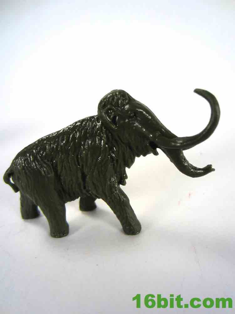 I'm a fan of mammoth toys. I'll pick up a lot of them given the chance, within reason. I'm less of a fan of models, and this woolly mammoth is pretty sharp. You'll notice it has smaller ears, unlike the believed appearance of the American version known as the Columbian Mammoth. The cold climate means smaller ears, so there's less frostbite, and nobody wants frostbite. Well, maybe the dire wolves. He has a small tail, a lot of sculpted fur, and is also unnaturally skinny for such a robust creature. The head has two pointy tusks and the trunk, giving it some much-needed depth. If you look at the body from most angles, it just doesn't look healthy. It's a decent figure from the side, although like most of the set the proportions aren't quite right. Such is the charm - it's a fun, lively little guy.