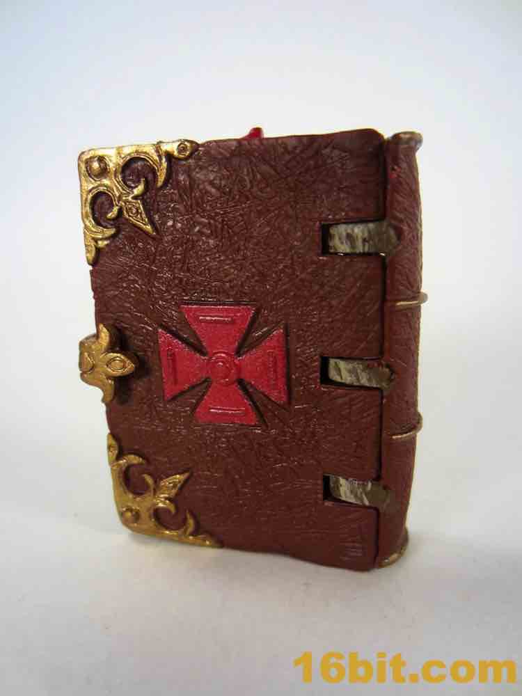 The accessory is notable in that it's both well done and not well done enough. The Book of Living Spells is exquisitely painted and sculpted, easily making it the best book accessory in this or perhaps any other action figure line. The binding is actually jointed, rather than the book being a solid piece or given the plastic which bends and shows stress marks over time. He-Ro's cross is on one cover, He-Man's is on the other, and on the inside... isn't much of anything. Some worn pages, but no pictures or lettering. It's very well done, but any sort of illustration would have been nice - after all, the vintage prototype seemed to have something in there.
