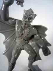 A horde of Winged-Tiger Demon figures based loosely on the pose of an old Falcon in some regions (and Human Torch in others) will just baffle you - there's very little similarity. Now given an axe, wings, and freaky heads, it's a unique monster unto itself The head sculpt is a smidgen rough around the edges, but the Demon - one of few figures I own called a demon - has slicked-back hair and great teeth. I assume the areas under the chin and behind the face were cut this way to function correctly in the tool, as there are some great details elsewhere that the head lacks. The axe looks like a bone and a bat wing joined up, while the chest and belt have some really good design work. This looks like a refugee from Eternia, or a gargoyle of some sort. It's a great design and likely a good addition to Hordak's forces. Each boot also has some nice design work, with a little bat symbol on each shin. It's an old fantasy figure that looks and feels like an old fantasy figure.