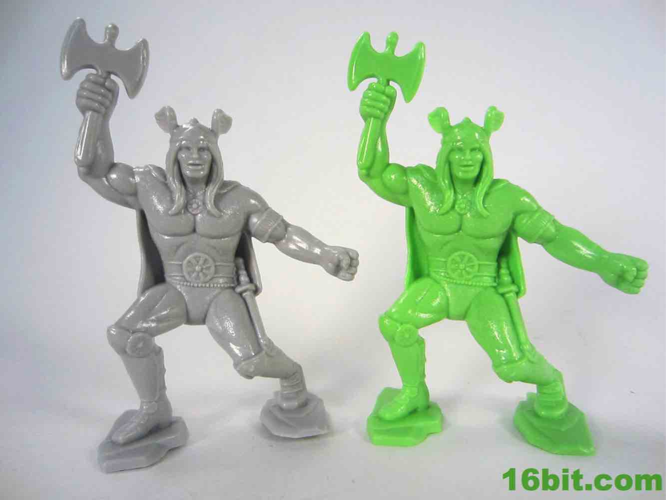 As an unapologetic fan of fixed-pose figures, these are pretty clever. Mixing the Marvel roots with popular 1980s-style fantasy designs really worked here, and the fact that these 2013 reissues are in exquisite condition leads me to believe that they weren't very popular during their initial run. At 40 cents a pop they're not as cheap as other Tim Mee figures, but the size and quality are possibly the best you can get for the price. (The jumbo Galaxy Laser Team Star Patrol are $2.63 a whack.) The figures all look great, but I wish they picked other (or different) colors than grey. It's gorgeous and great for showing off detail, but it matches the Battle Mountain quite closely. These are good, I wish there were more like them - not just more colors, but more characters. They're good examples of what they are - authentic toy industry weirdness with a great story. If I ever meet anyone new who loves RPGs, I'll probably buy them a set (or buy a bag, and give them one set) just because. If you like 1980s weirdness, this is it.