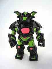 This Neo Granthan is cast in black plastic which seems similar (if not identical) to my Hades Mimic Armorvor from a few years ago. The paint is clearly different, drawing inspiration from... I'm not sure. It feels like it's drawing from a few different baddies from the 1980s as well as Animated Lockdown, with a pink "Black Core" and green highlights. The main reason to buy this figure - assuming you don't already own an Armorvor - is that introduces the long-teased new head. We didn't know what it was going to be, and the furry wolf head has been replaced by a helmeted head that looks sort of like the love child of a dinosaur and a Power Lords creature, done up in the Onell Design house style.