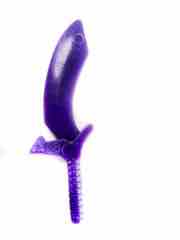 This fellow doesn't do much - he can stand and his arms rotate, with hands designed to g.shtml the (at least in Japan) strangely named sword. It's the Bread & Butter Sword, which is a perfectly nice curved-blade weapon with a weird triangle guard around the grip. It's distinctive and not particularly cow-like. I don't know what else you might give it, to be honest - it's a decent fit.