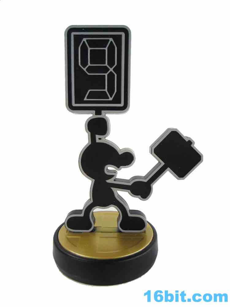 So let's get started with Mr. Game & Watch. Based on a series of LCD games that predated the original GameBoy by a few years, the little plastic stick man is what it is - basically a cookie cutter on a base. Thankfully Nintendo realized how boring a figure that was and gave us four options, but there's so little work being done here that pretty much anybody with minimal skill and a 3D printer could probably hash these out. The figures are molded in black with a light grey outline, and by default you have a frenzied figurine. You can swap that out for a parachute figure from Parachute, judge (from Judge), and bell (which I think is the Bell Bug but I don't have a complete set of these things). They're about 3-inches high, and with little paint or articulation are amusing mostly as a piece of Nintendo memorabilia for old-timers. I'd say "they'll never make another one like this!" but then someone will prove me wrong when the Smash Bros. choco toy sets come out in 2018.