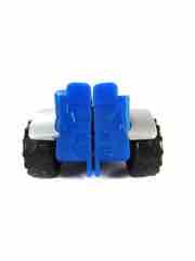 As a tiny tractor, the vehicle is smaller than a business car and features rolling wheels with no real action features. It's not unlike the rest of the vehicle modes, it doesn't do much of anything beyond look neat. A Decepticon symbol is visible as a scannable sticker for an app-based game I have yet to try, and silver deco over each wheel looks pretty spiffy. It's not true to the animation model, but hey, at least it looks neat. The transformation process is kind of a pain - the leg on mine kept popping off. I don't expect I'll play with it much.