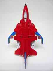 It's a plane! Transformation to jet is pretty much the same as Skydive. Pop open the legs and move them forward. Fold down the arms. Rotate the head. Get the nosecone up like a hat. Oh, and rotate down the landing gear if you want. It's fun. And now you probably won't see it in stores.