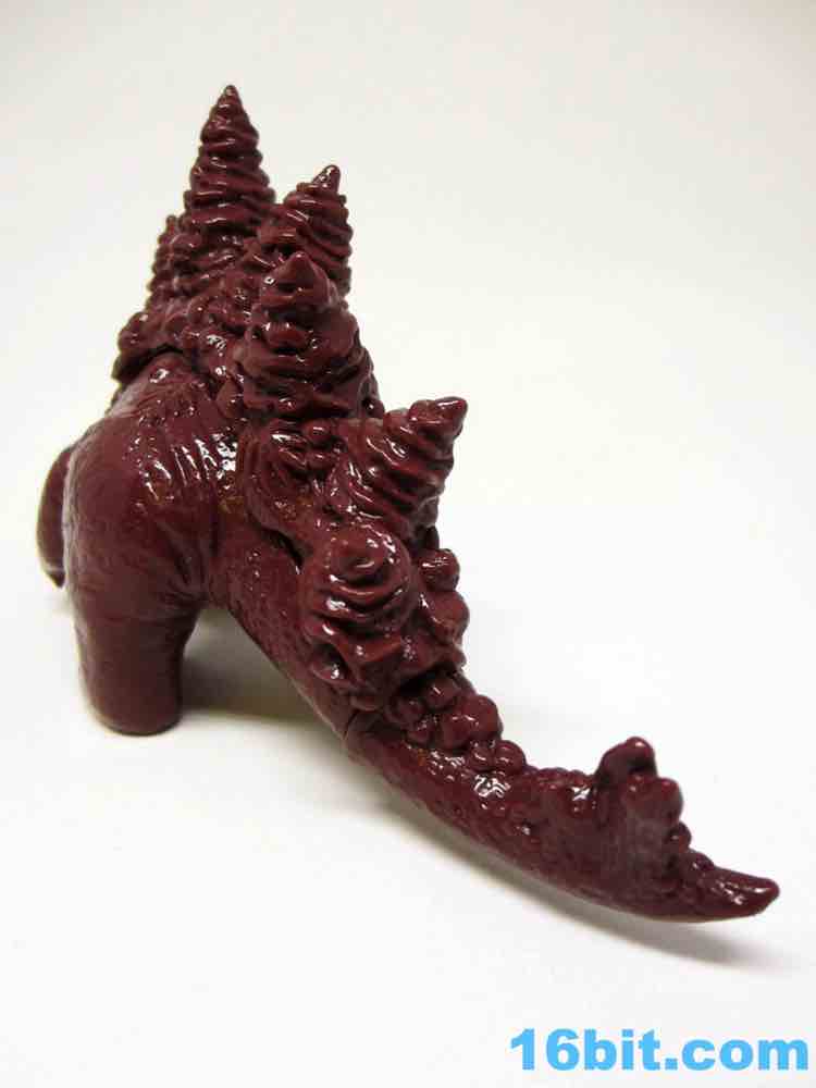 The 4-inch tall, 7-inch long figure is a marvelously creative design that clearly comes from someone who really loves everything a Japanese vinyl toy has to offer, right down to the typeface stamped in the creature's gut. It's clearly labeled "STEGOFOREST" and "JNARENS" in the same font you've probably also seen on a few other designer Japanese toys as well as some Godzilla, Gamera, and Ultraman figures. Mr. Narens did a nice job aping the visual language of the genuine article - this is clearly a toy that is made to look like other Japanese toys.