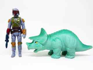 If you've looked at recent designer vinyl toys, this Triceratops compares favorably. He's got tough-looking skin, horns, a little green tongue, and a tiny tail. He's probably a baby - but dagnabbit, he's cute and awesome. The neck can turn, and that's really all this figure does. Despite being "cute," it's not cute in the same way the current Imaginext or Playskool Jurassic World dinosaur toys are - this is a vaguely realistic take on the long-dead creatures. It's not trying to be cuddly or stylized, it's just a decent-looking toy and the same can be said of many of the Definitely Dinosaurs toys - even the retail ones. I remember really digging these, despite the less-than-wonderful cavemen companions... but if you're a growing boy the Playskool brand name can be a damning thing. When you're pushing 10, that's baby stuff - and I remember it being a stretch to still even be vocal about being interested in toys after 8.