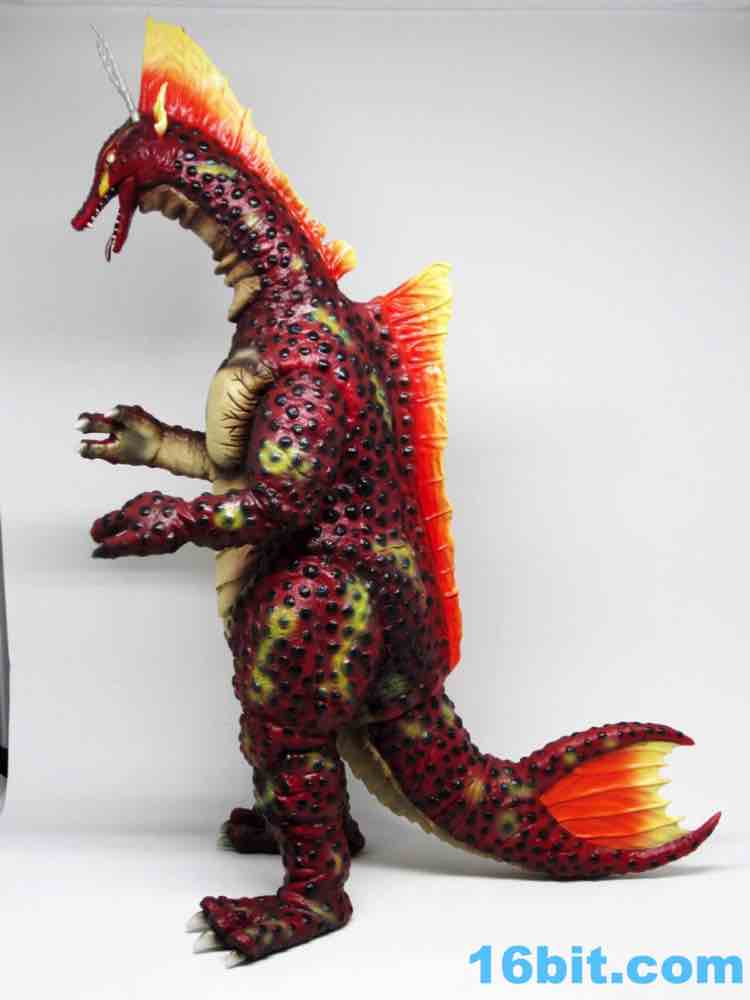 The coloring is amazing - black warts cover the figure, the eyes have a gorgeous metallic sheen to them, there's a neon orange fire-like shade on his fins, and there are all sorts of markings and shading throughout the figure. Even his claws have little black marks to help hide the seams on the actual costume, and if you squint you can see a lot of places on the toy that probably represent where the real-life costume fits together. Someone did their homework here. The coloring on BanDai's older, smaller effort is nothing to sneeze at but this big giant thing is a work of art. It costs a lot, and it feels like it should.