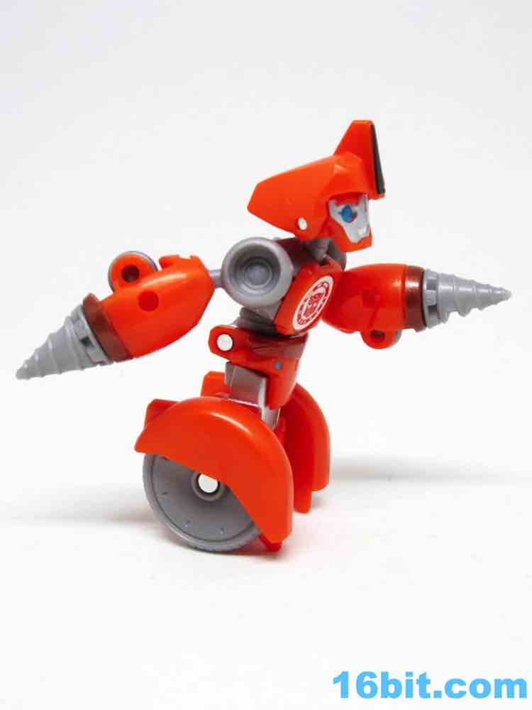 What you see is largely what you get, with rotating drill hands. And wheel feet. When you get right down to it, not counting the wheel feet, he has 10 points of articulation. That ain't no slouch. He can even be posed to look like he's dancing, and I can't assume the one-step version is better than this - but if it is, tell me, I want to compare it. If you bought this toy and were told it couldn't transform, you'd still enjoy it just because it's closely scaled to the bigger figures and he's just so much fun to play around with on your desk.