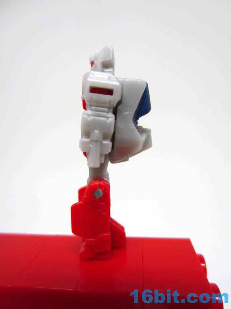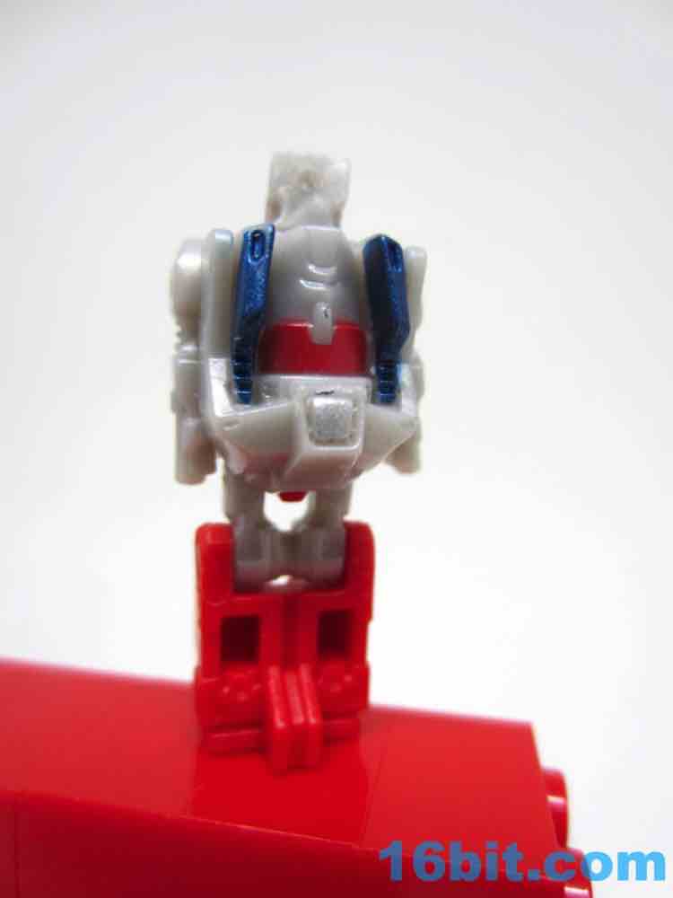 This 1.5-inch robot is one of the smallest (if not the smallest) robot I've gotten out of this line since... possibly ever. (I didn't have any of the original Headmasters.) It's nifty and small, easy to transform from robot to head. The tiny robot's head has a tiny red painted visor, but no other visible deco. The head turns, and the arms are on little ball joints. The figure has jointed hips and knees, which is more than a little amazing when you're a Star Wars collector and they phased such things out.