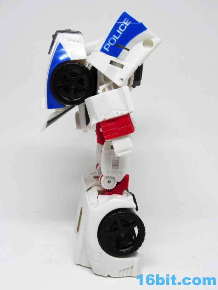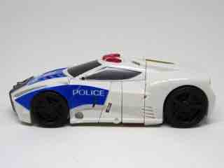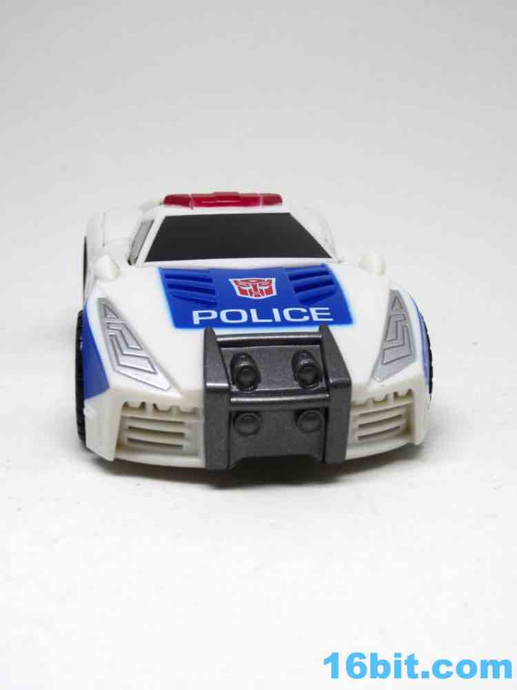 The transformation is nothing new, but the car is - they kept the red lightbar, but lost the big stars. We also saw added "POLICE" markings and some blue bits on the front half of the cruiser, which makes for a nice bit of updating to what could have been a slightly more boring looking toy. Of course, the blue is largely hidden in combined mode, so you'll probably never actually see it long enough to enjoy the extra mile to which Hasbro's deco team went to not bore you.