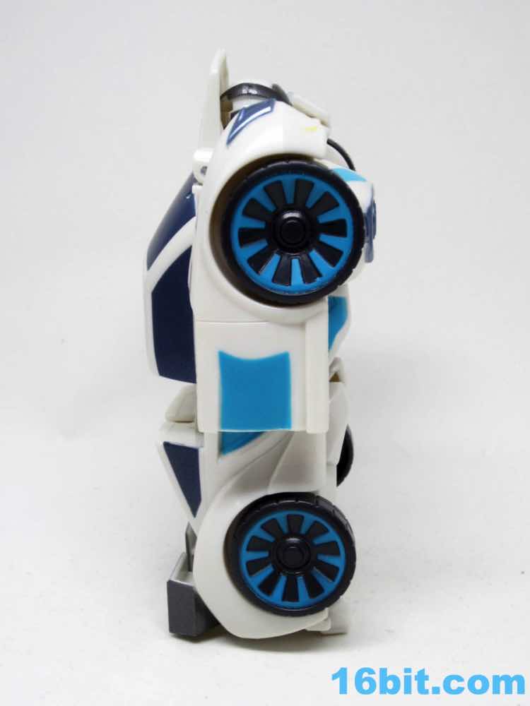 The 4 1/2-inch robot departs from the animation model, but does an acceptable job keeping the colors alive. The blue on the wheels is a stunner, given that so many of the Generations line for collectors have unpainted wheels. This figure is consistent with the rest of the line in that she has no actual articulation, but does sport some nice sculpting. The silver brings out her helmet and grille nicely, but I'm sure someone is going to take some brushes and pigment to her feet, hands, and parts of the helmet.