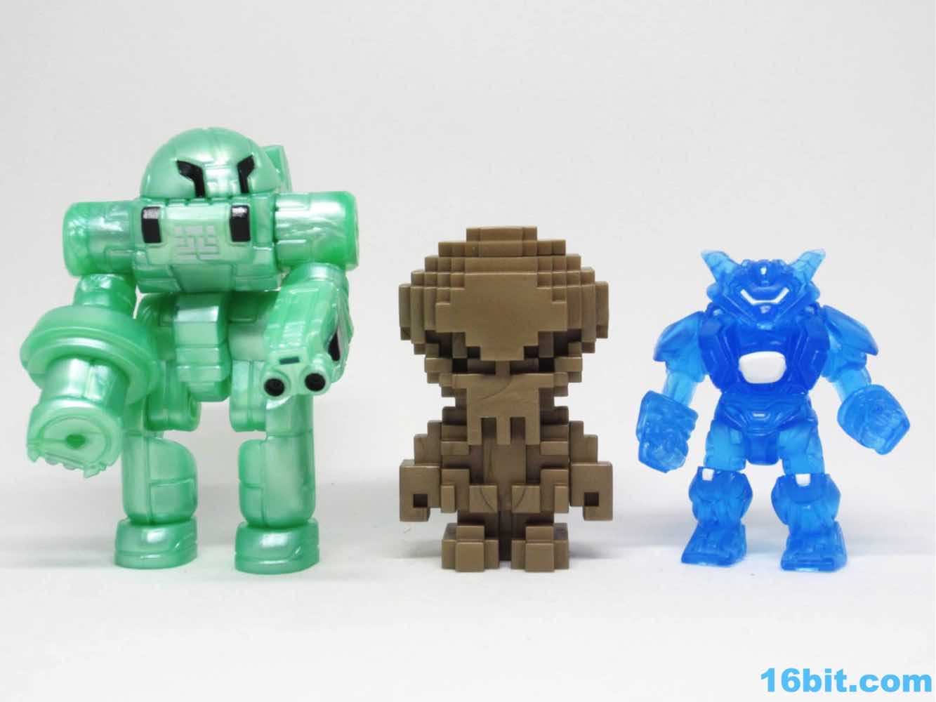 When I saw the first Bit Figs showing up on social media, I thought "Those are neat, but I'm sticking to this whole 'don't buy made-on-demand' kick." I already live in sort of a black hole of toy purchases. When I saw a plastic made-in-a-factory Mega Bit Pheyden Trophy Set was on sale - $10 for 2 figures, no less - I pounced. I love weird pixel things, and I love Glyos, so it's a good mix. (So far I've skipped Minecraft because boy howdy those things are pricey.) With a 2 3/4-inch and a 1-inch figure, made of 4 total chunks of plastic, I figured I should give these a whirl.