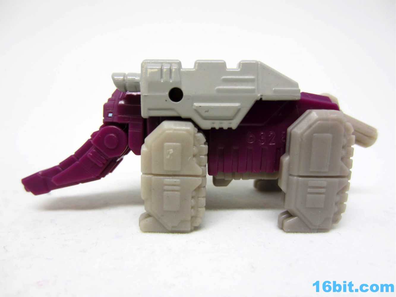 The elephant mode is cute, but not as cute as the G1 original. The new toy has smaller eyes and ears, making it just a tiny bit less cute - and when we're talking robot animals, cute counts. He has no problems standing upright, and the Shuffler head can be stored in the belly. If you opt to not store him inside, or lose him, the toy loses none of its visual appeal or structural integrity. In short, it's a good design.