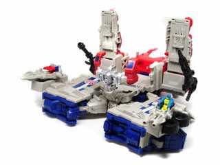The big robot is pretty fantastic, with articulation that matches Magnus exactly. Or closely. The feet are pretty much the same, the hands are virtually the same - Optimus has grooves in which to plug the grips of his weapons before his hands grip them - and he stands quite nicely. I like the sculpting a lot, the fact that the shoulder cannons are back with little places for Titan Masters to sit is just icing on the cake.