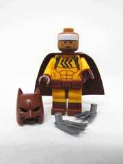 The figure's cowl is different than Batman's, which surprises me given how easy it would have been to reuse the same cowl from the Bat-bags. It works pretty much the same way - the minifigure head has a white headband that functions as eyes once the mask goes on. There's also a belt piece rather than just painting it on the torso, as was the case in older Batman figures. Catman's claws are hand-held weapons that look like Wolverine's claws. Hey, it works.