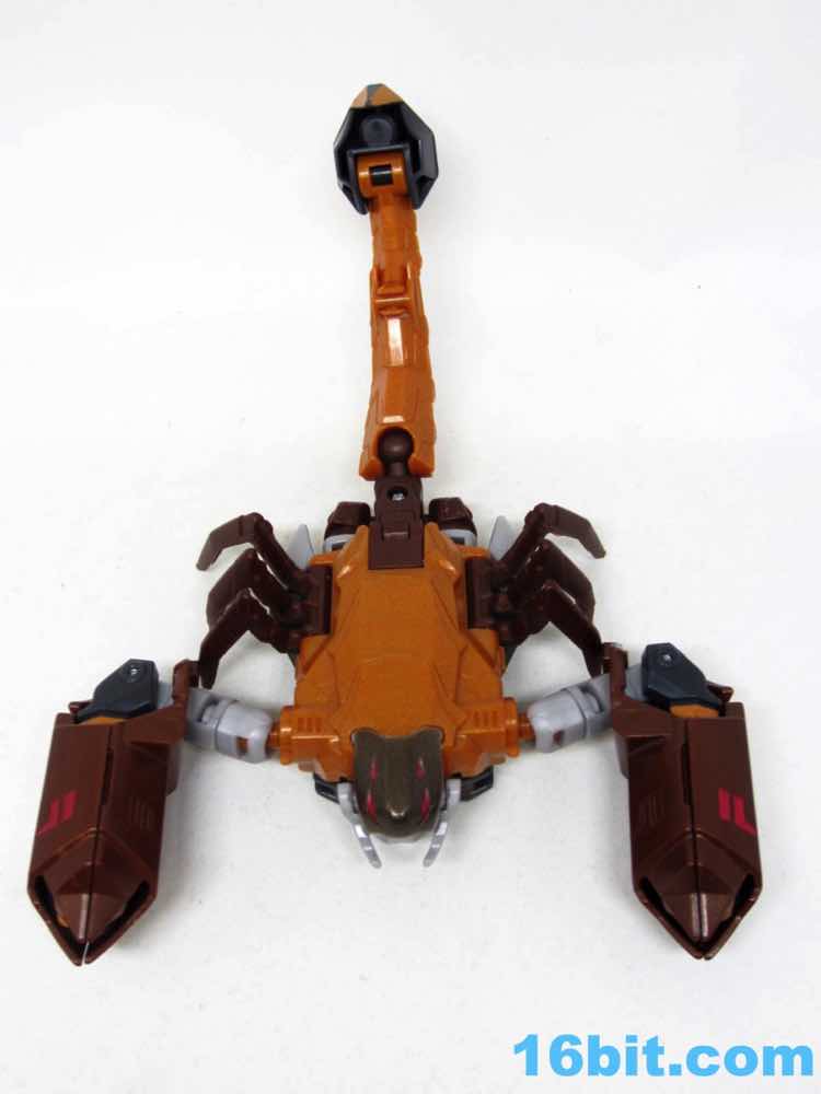 Basically the same size as a deluxe, Scorponok stands about 4-inches tall at the head, with giant shoulders bringing him up to about 6-inches. 17 points of articulation await you, most of which are in the legs. Oh, and there's a jointed tail too - you can move that a bit too. It can be folded up, or used to prop him up if you're worried about him toppling over.