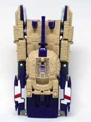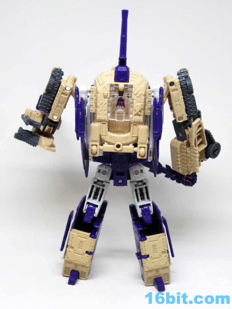The tank mode is a weird one, because you have most of a tank with some jet wings wrapped around the back. Joy may be found in sculpted tank treads with little (mostly useless) wheels underneath, but the turret spins and a figure can sit inside. You can also position the gun on the tank in a few interesting ways, which was a departure from Megatron's weapons and an appreciated alteration from where I sit. Another functionality issue was (at least on mine) the figure's shins sort of scrape the ground when in tank mode. Either this means I can't do it right, or there are form fit issues. Take your pick, you probably won't be wrong.