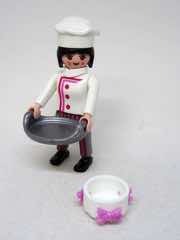 If you like what you see, this is a perfect figure - everything fits, the decoration is clean, and she can use her tray with the best of them. Playmobil (and LEGO) put out figures that skirt the borders of perfection, but at the cost of newly-sculpted elements on their respective persons. Accessories build out a core figure, and the end result is usually a durable, high-quality figure. You won't be disappointed by her nifty hat and colorful make-up, but I wish she had a kitchen to run or some more to do.