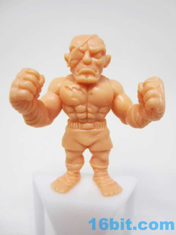 Finally there's eyepatched, scarred Sagat . He has his shorts, he has a sculpted, painful looking gash on his chest, and the dude is ripped. Also ripped, a hole in the side of his head. His fists are wrapped for the fight, and his chest is ridiculously ripped. Complete with massive frown, this figure does a great job of bringing the giant fighter's details to life a small, 1980s-style mini-figure.