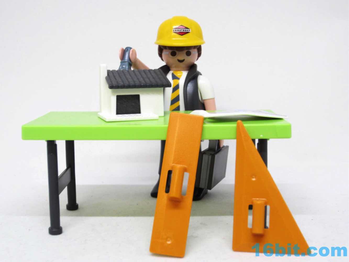Item No.: No. 5294 Manufacturer:Playmobil Includes:Figure, table, model home, compass, blueprints, suitcase, helmet, drawing gear Action Feature:n/a Retail:$4.99 Availability:2013 Other:I can't believe this is real, either