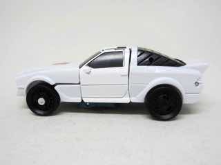 The resulting car is a white sporty little thing with a big silvery Autobot symbol on it. The wheels roll adequately, and mine has a paint scrape on it. Again, this isn't the kind of thing you can tell until you open it. Other than this, it's perfectly good - just like a white Windcharger. It doesn't do much of anything, but that's typical. You can pop it open and sit a Prime Master or Titan Master inside if you like.