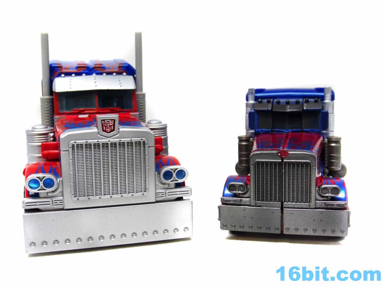 Times have changed! During the entirety of Generation 1's run, the main hero Autobot got fewer toys than you can count on one hand. Fast-forward to the modern era and you can't launch a new line without some sort of Optimus Prime on the drawing board. In stores today, the now-new Studio Series has Hasbro and Takara-Tomy selling one single line to be the same in Japan and elsewhere - which is good and bad. While Optimus has a complex transformation and tons of articulation, he's a bit meatier than your average Deluxe-sized toy and he's really not all that much larger than the significantly cheaper deluxe Dark of the Moon Prime. (Which is now very expensive, that's what happens when collectors skip toys aimed at a wide audience.)