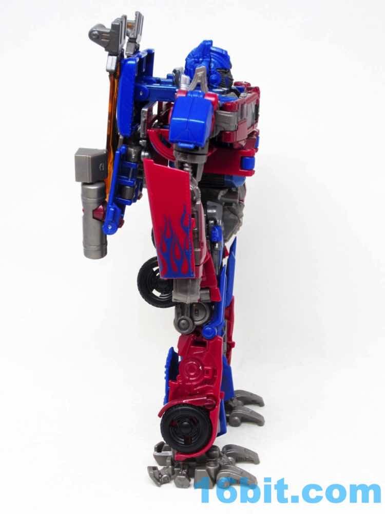 Before comparing him to my other movie Optimus toys - and I had more than I realized - I was happy with this one. It was fun to futz with, and as I had no Leaders or Masterpieces I assumed it was bigger than it was. Transformation is surprisingly involved for its size, giving you evidence that Hasbro didn't phone its newfound agreement with Takara-Tomy in. The work is there - you can see the detail, the panels, the little sculpted bits. You won't see painted wheels, or a bright shade of red, or a toy that's transformed correctly when you pop it out of the box. Check the leg wheels. You're welcome.