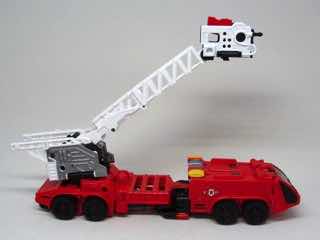 The Inferno fire truck is the red fire engine of your dreams. Sort of. It's round, it's fun, it has a white ladder - it looks like they slapped the original toy's colors on this mold. The articulated ladder is a lot of fun, but the wheels are kind of strange and it looks uneven when you view it on the side. It's probably the weakest of the three modes, but it's decent enough. We've seen far worse, and the colors are pretty fantastic.