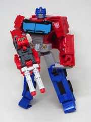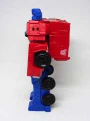 The Optimus Prime truck is not exactly a charmer - transforming it is fun, but it's lacking in paint and kind of long. It doesn't do much, but it doesn't have an abundance of visible kibble either. The snap-in wheels spin a bit, but not as well as the ones with metal pins.