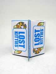 I heard some Lost Kitties buzz around Toy Fair. "Basically Littlest Pet Shop cats in milk cartons you dig out of Play-Doh," I was told, but was unable to catch the sneak peek. The cats come in colored dough, with vanilla being "common cats," chocolate being the next tier, and strawberry being the rarest. I got a Mr. Mush in this set, which is in the subset "#CATHLETIC" on the included poster checklist. a) I am very grateful Hasbro has taken to including a catalog in at least one of its product lines. b) I would have also accepted. "#CATAtONIC" as the purple, Grimace-like creature looks vaguely comatose. For kicks, let's also add c) I am impressed Hasbro put out a toy based on internet cat memes with no app or internet-enabled functioanlity.